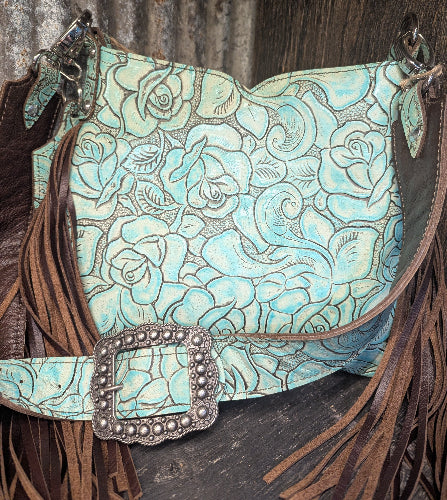 Hobo, Small Tan speckled hide with turquoise longhorn