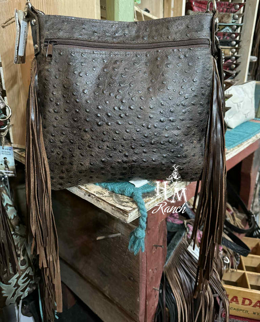 Mid Rise Leather Handbag, Red Cowboy Tooled