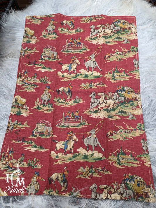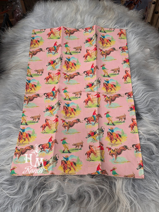 Retro Cowboys and Cowgirls Kitchen Towel, Pink