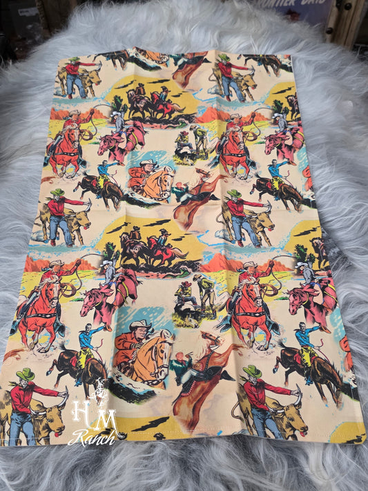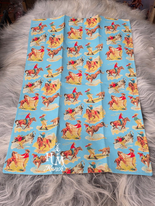 Retro Cowboys and Cowgirls Kitchen Towel, Blue