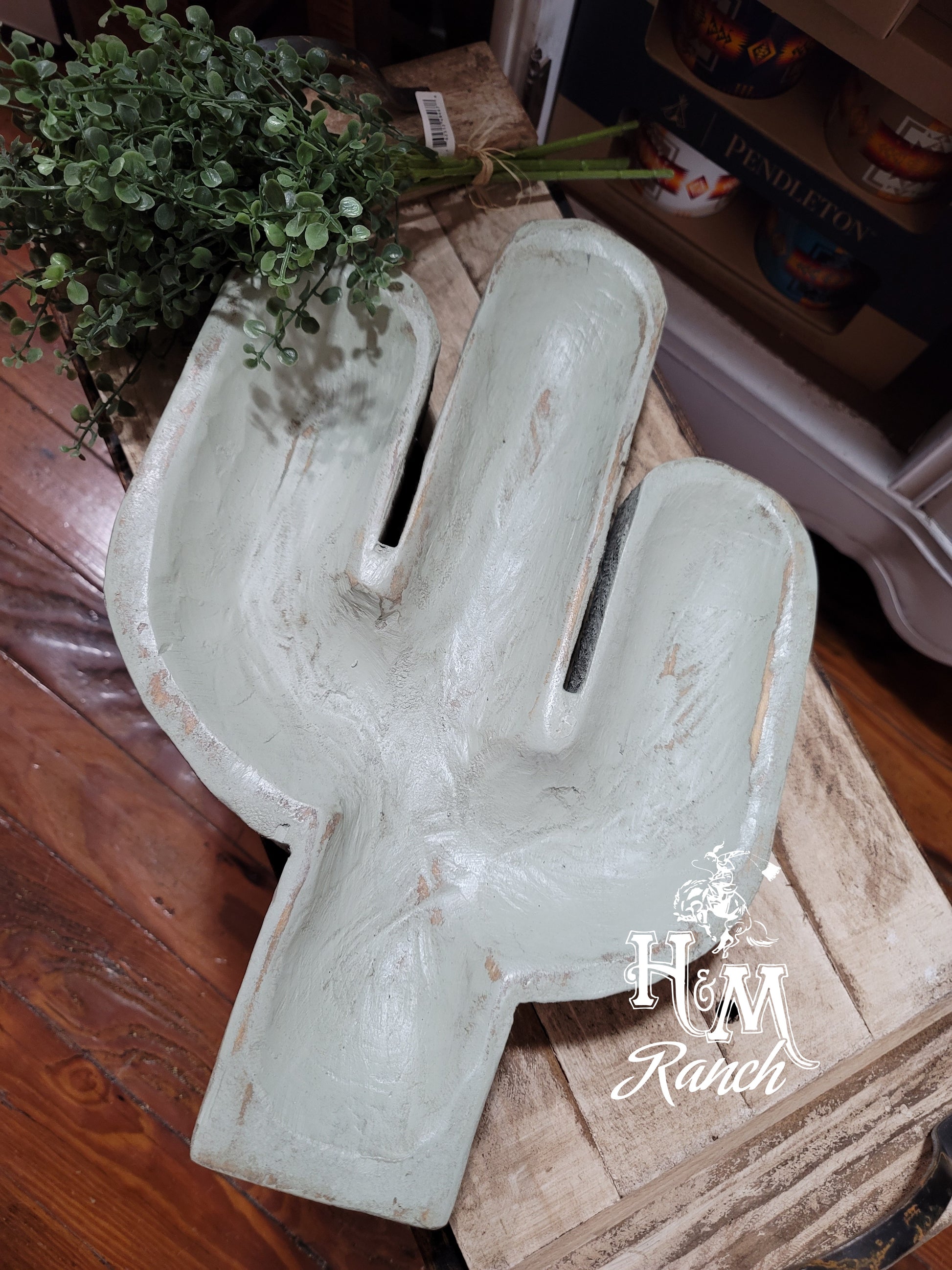 Wooden cactus bowls add fun and conversation to your western home. Each bowl is unique, no two bowls will be the same. Created from solid wood and finished either in natural with sealed top coat or white/sage green paint with clear top coat.