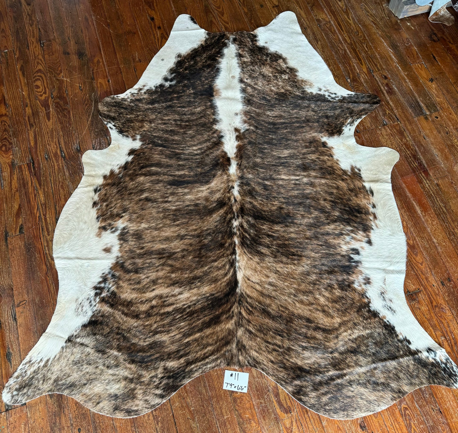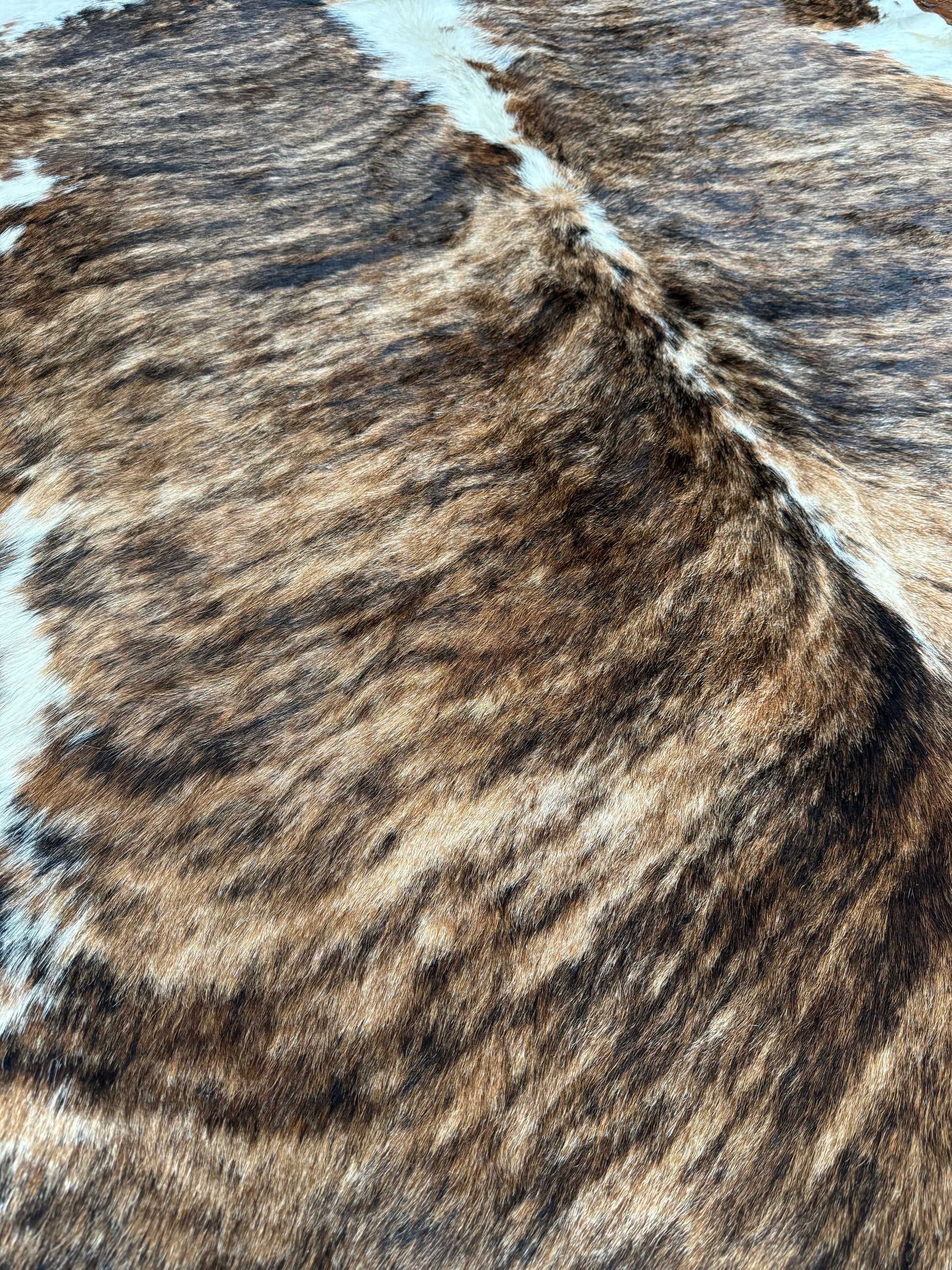 Beautiful Brazilian cowhide rug Light Brindle hide with white belly & Line back . Stunning hide with black, brown & Tan tones. This hide will weigh approx. 10/12 pounds. Statement piece cowhide rug, this is a premium Brazilian cowhide rug.
