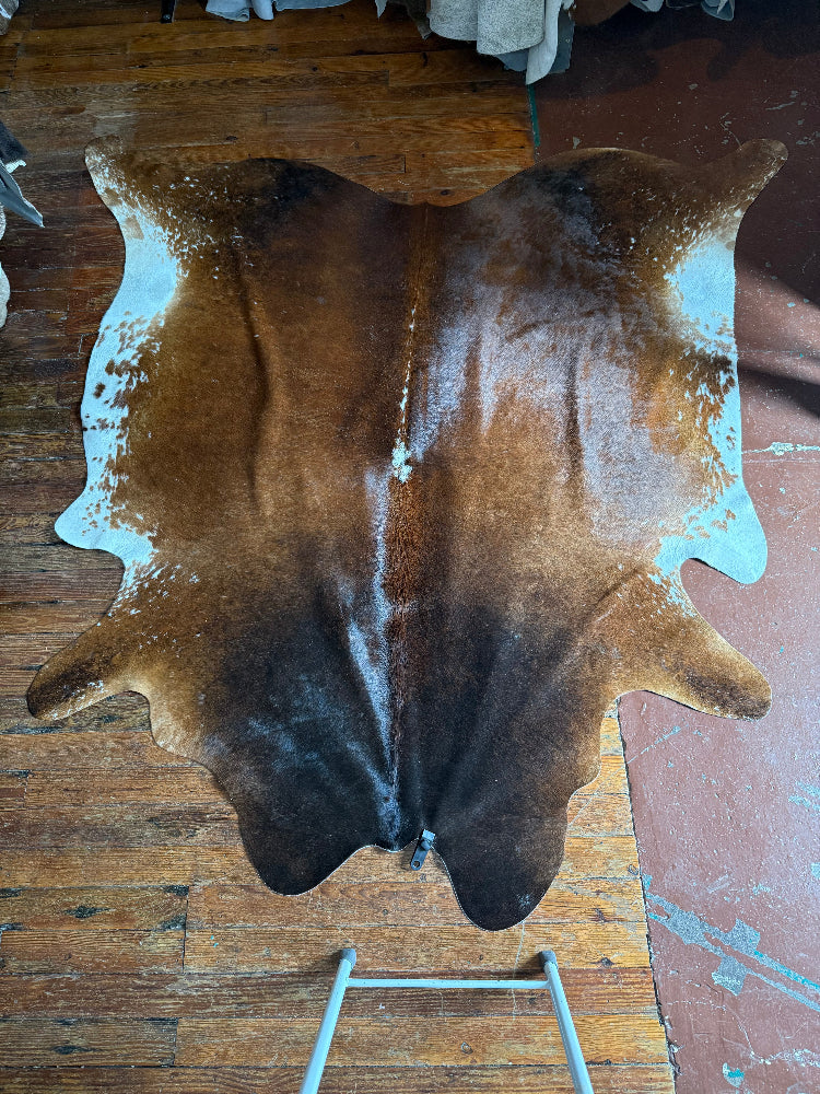 Beautiful Brazilian cowhide rug Tri color hide with white belly & partial Line back . Stunning hide with brown, red & Tan tones. This hide will weigh approx. 10/12 pounds. Statement piece cowhide rug, this is a premium Brazilian cowhide rug.