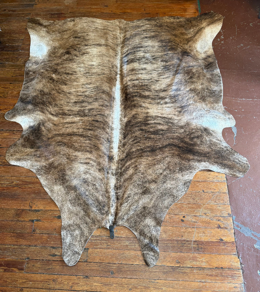 Beautiful Brazilian cowhide rug, tan brindle hide with lighter tones under legs. This hide will weigh approx. 10/12 pounds. Statement piece cowhide rug, this is a premium Brazilian cowhide rug.