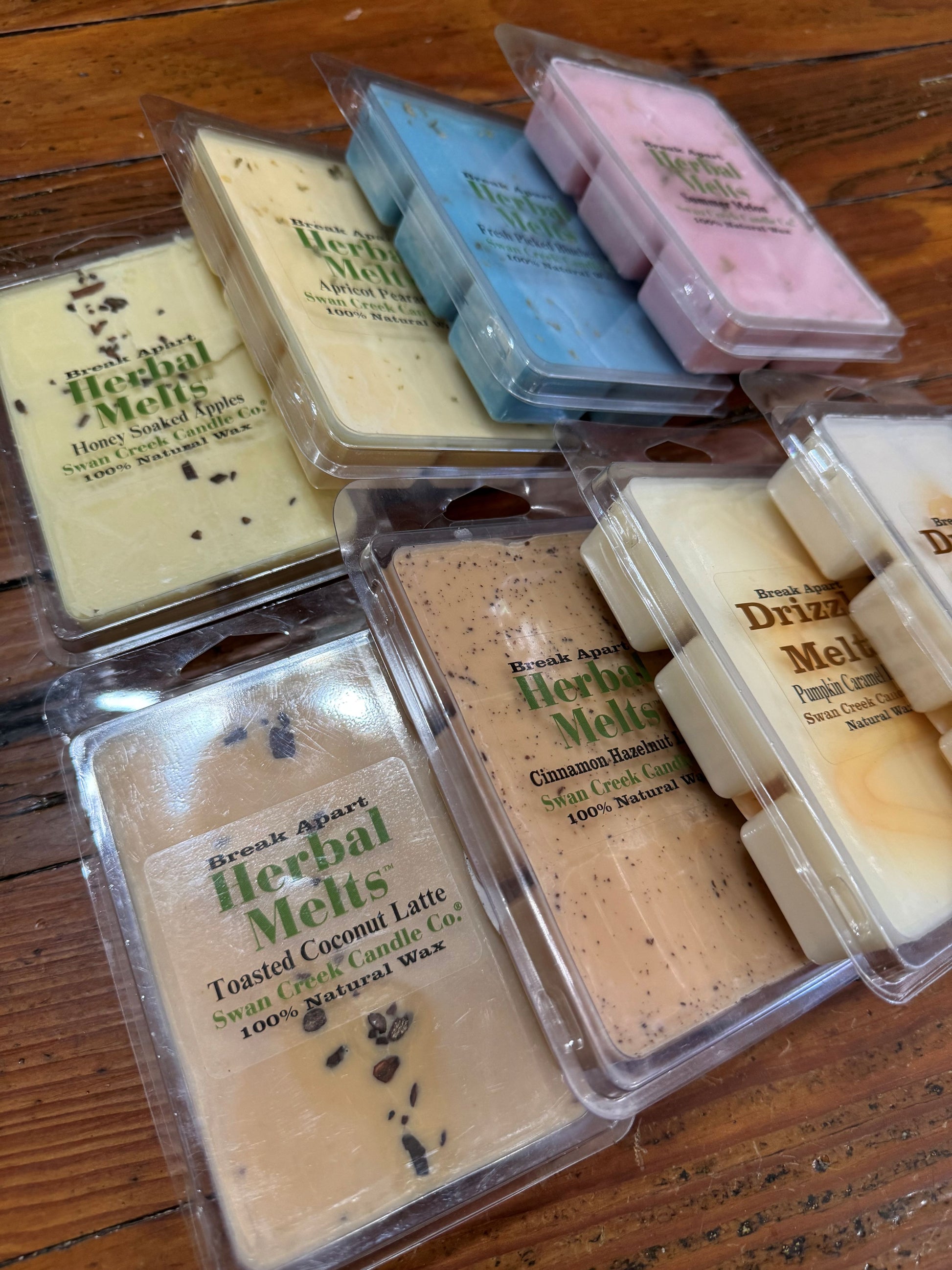 Break apart Drizzle Melts, made of 100% Natural soybean wax.