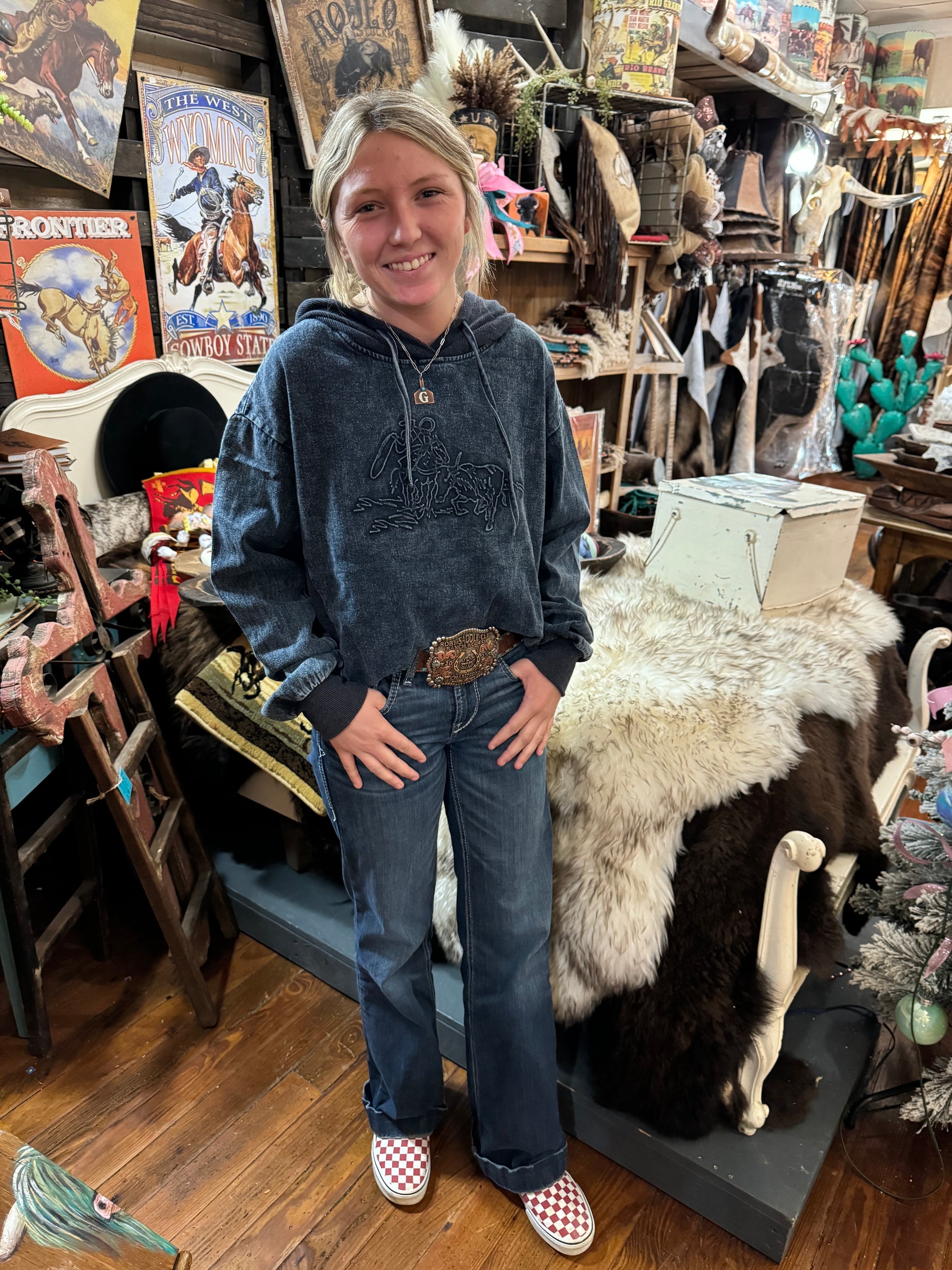 The Urban Denim Hoodie 2.0 is a unique blend of Western and Weird brought to you by 2 Fly Co. This women's hoodie is perfect for those seeking a little bit of everything. Its hand-drawn, original designs are crafted to transcend fleeting trends, making it a piece you'll want to keep for generations.