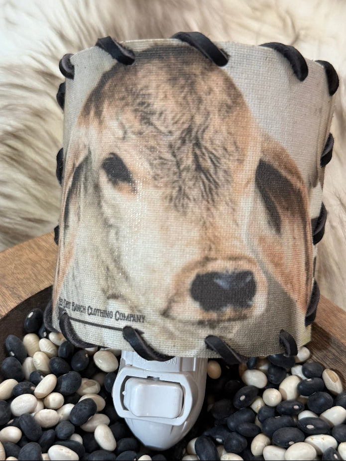 Western nightlight for that Brahman lover! Nightlight features Brahma face on front, hand laced leather detailing, on/off switch. Standard nightlight bulb included.